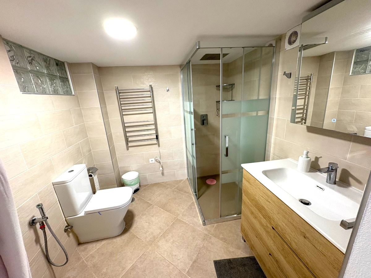 Set on a 1,000 m² private plot, the property features two independent homes, ideal for families, guests, or rental opportunities. The upper floor offers a bright three-bedroom residence with generous living spaces, a large kitchen, an office, and a playroom — perfect for modern family life. The ground floor includes a fully equipped two-bedroom apartment with two bathrooms, one of them conveniently connected to the pool area.