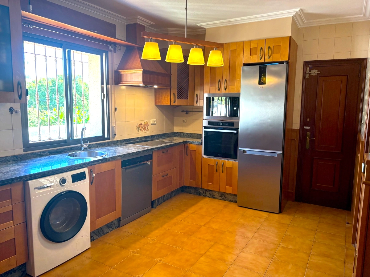 Outdoors, enjoy a private swimming pool, multiple shaded terraces, BBQ and chill-out areas, and a dedicated children’s playground, surrounded by lemon and mandarin trees and colorful Mediterranean plants. A spacious garage with several storage rooms and an energy-efficient solar water system complete this inviting home — designed for relaxed, sun-filled living on the Costa del Sol.